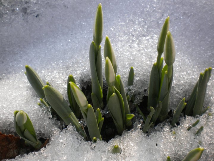 Потънало във пухкава къделя, едва подало над Света глава, усмихва ми се, разцъфтяло смело, със Зимата си прави май шега!... /от нета/
