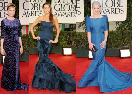 Много дами отдадоха своето препочитание на кралското синьо и неговите оттенъци. Кели Озбърн (Kelly Osbourne ) в рокля на Zac Posen. София Вергара в разкошна рокля на Vera Wang с цвят на морска вълна. Елизабет Макговърн в рокля на Jacques Azagury, Мишел Уилямс (Златен Глобус 2012 година за най-добра второстепенна женска роля във филма „Моята седмица с Мерилин“) в рокля на Jason Wu. Сара Мишел Хелар (известна с ролята си в „Бъфи, убийцата на вампири“) бе в рокля с абстрактни рисунки в син цвят на Monique Lhuillier.