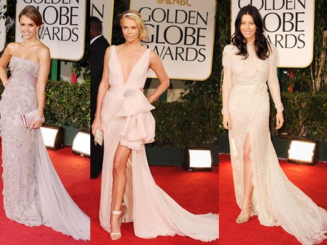 Безспорният фаворит на церемонията са пастелните цветове. Шарлиз Терон (Charlize Theron - главната роля на жена сериен убиец във филма Чудовище. С тази си роля печели награда "Оскар" за най-добра актриса и Златен Глобус 2003г) е във въздушна пастелно-розова рокля на Dior Couture. На светлите цветове отдават своето предпочитание и други актриси - Джесика Алба ( Jessica Marie Alba) е в нежносива рокля на Gucci, а Джесика Бил (Jessica Claire Biel) в разкошна дантелена рокля на Elie Saab Haute Couture. Хайди Клум (известна като един от ангелите на Victoria's secret) е в минимилистична рокля в цвят нюд на Calvin Klein Collection.