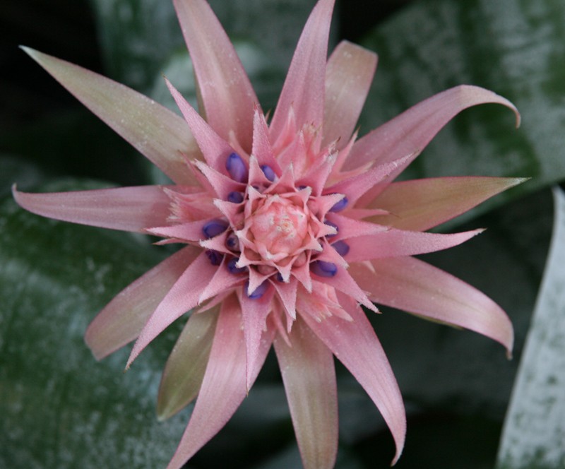 Ехмеята (Aechmea) едно удивително цвете, което привлича погледа със сребристите си листа и голям розов цвят. Името на ехмеята на гръцки означава “връх на копие”. И наистина цветето напомня готов за бой воин: излизащите от фуниевидната розетка и обърнати надолу листа са плътно покрити с шипове, даже цветовете са защитени от заострени прицветници.